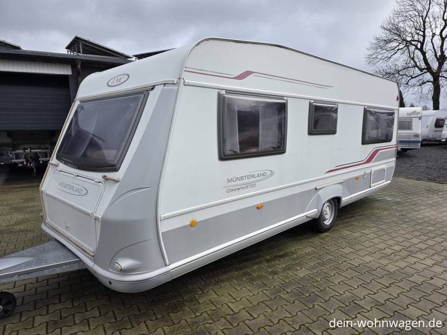 seltener und sehr gepflegter LMC Münsterland 570 D Concerto mit Doppelbett, gemütlicher Rundsitzgruppe, 4 Schlafplätze, Vorzelt, Markise, Antischlingerkupplung,100 Km/h Zulassung, etc.